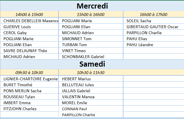 Départs et résultats